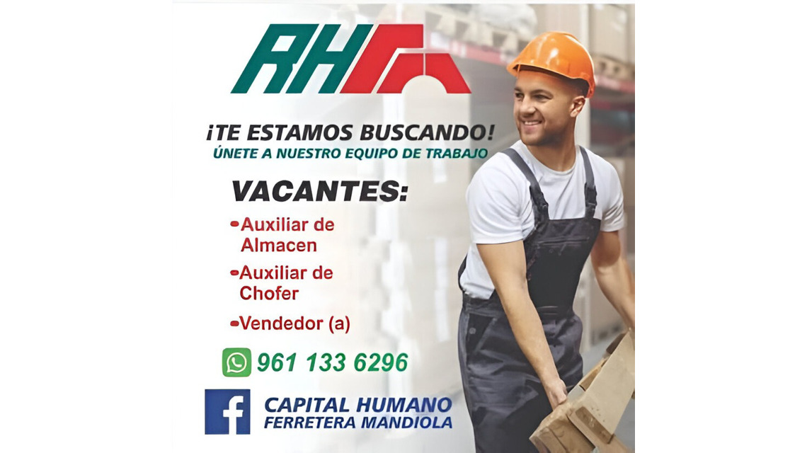 • Experiencia en el giro ferretero (indispensable).